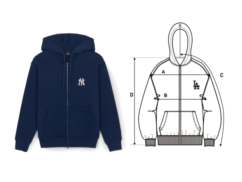 Bảng size áo khoác hoodie có khóa kéo MLB chuẩn