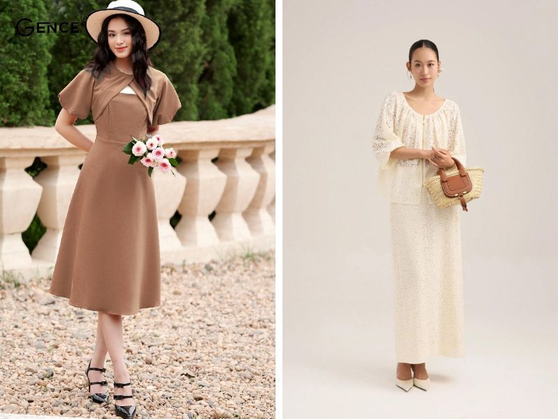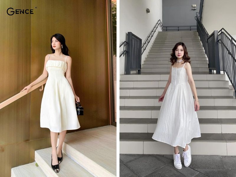 Bắp tay to nên mặc gì khiến nhiều chị em thắc mắc thì Gence gợi ý chiếc đầm với thiết kế nhấn nhá cánh tiên ở tay. Phần tay áo rủ xuống giúp che đi phần bắp tay của mình. Mặc dù váy cánh tiên mang đến sự nữ tính nhưng không làm mất đi vẻ ngoài năng động và cá tính. Hãy chọn những chiếc váy có chút điểm nhấn như cúc áo, đính nơ hay chất liệu để set đồ bớt nhàm chán.