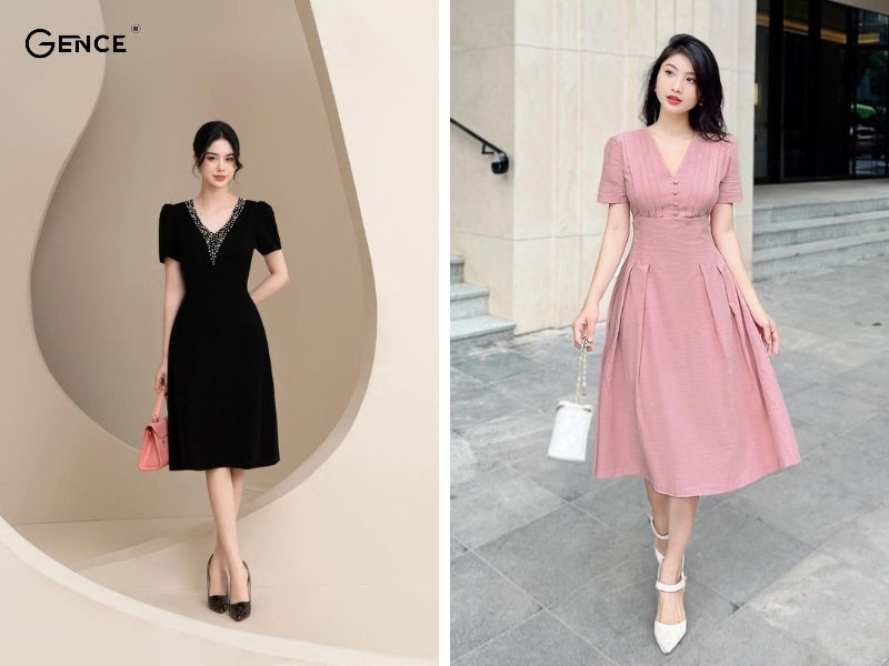Đầm váy cổ V thanh lịch
