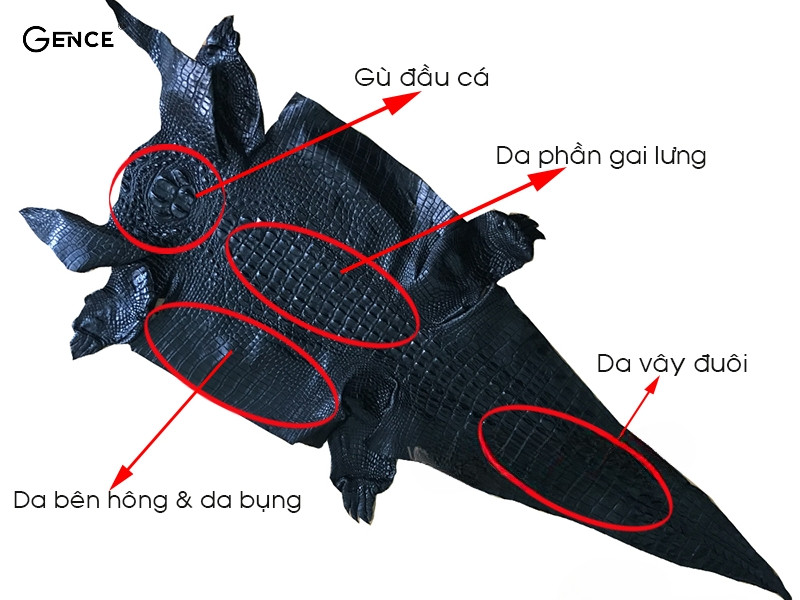 Phân biệt theo đặc tính của bộ phận của da cá sấu