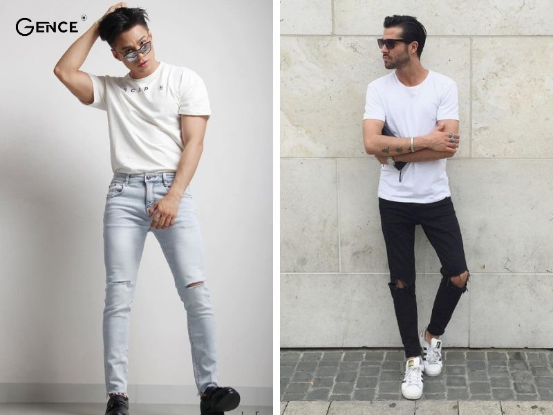 Đây là outfit khá an toàn cho các bạn nam ưa thích style hiphop nam đơn giản nhưng vẫn chất lừ. Với áo phông có tone màu trầm như đen, xám với họa tiết hiphop mix cùng jean rách giúp bạn hack chiều cao diêu đỉnh. Tuy không tốn nhiều thời gian suy nghĩ nhưng vẫn mang đến outfit cực trendy và chất lừ
