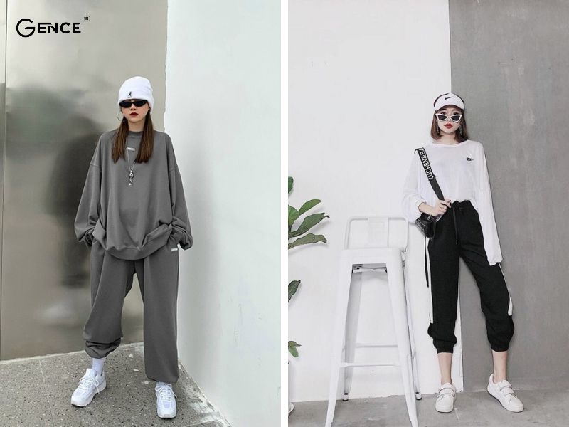 Áo sweater và quần jogger điển hình cho phong cách thể thao và năng động. Thiết kế quần khá đa dạng, vì vậy khi bạn mix-match sẽ tạo ra nhiều phong cách thời trang khác nhau.