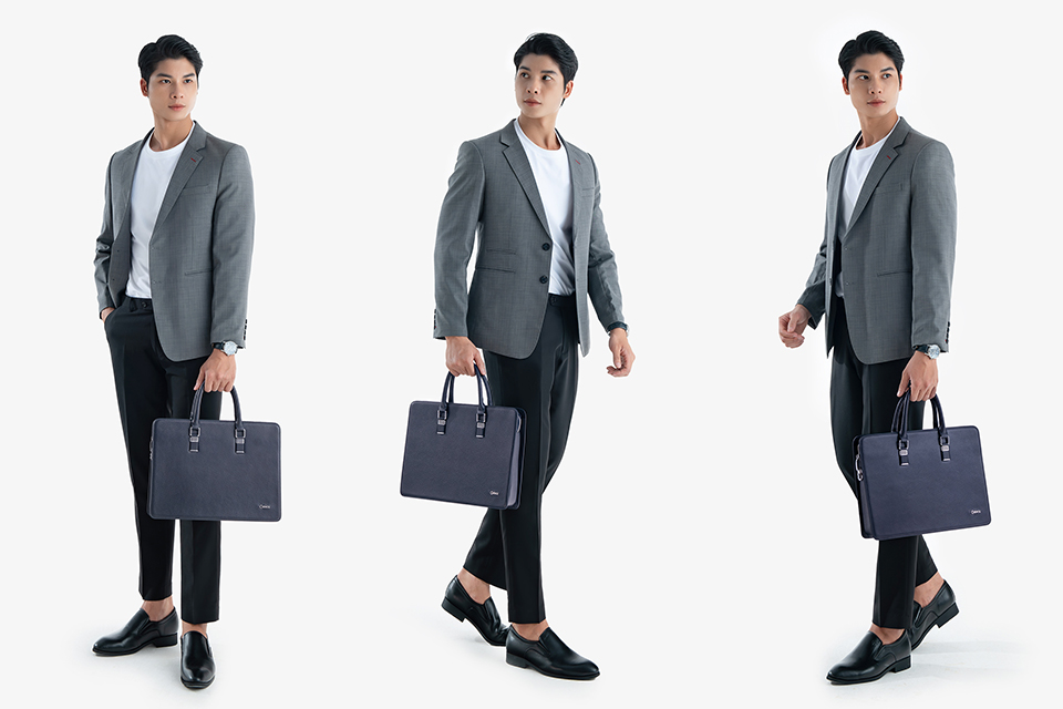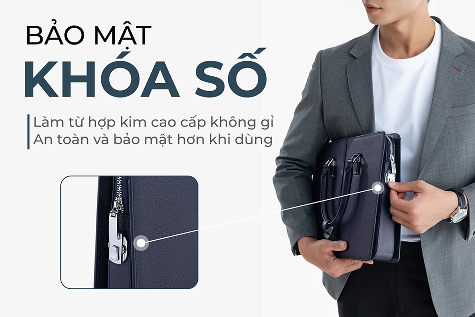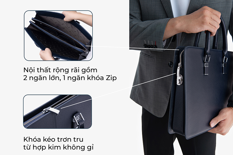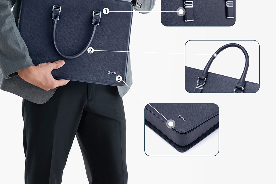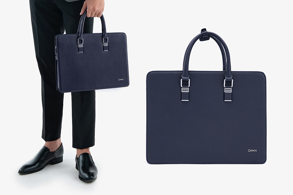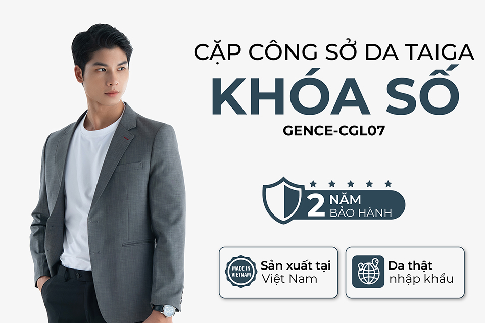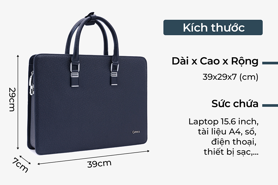 Cặp da nam cao cấp da bò Taiga CGL07 từ Gence Việt Nam chất liệu thật màu xanh vừa đựng laptop và tài liệu khóa số an toàn bảo hành da 10 năm phụ kiện 2 năm.
