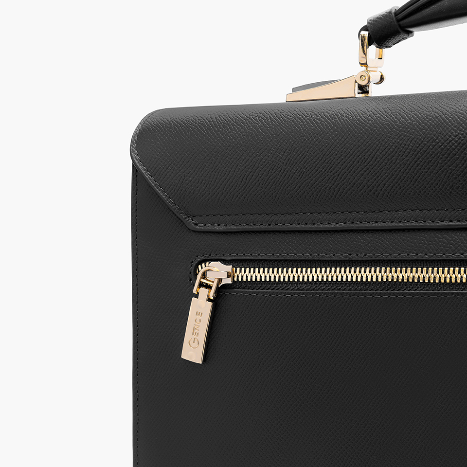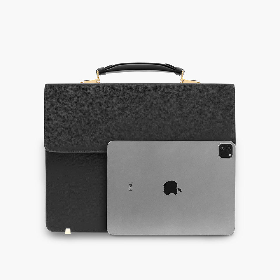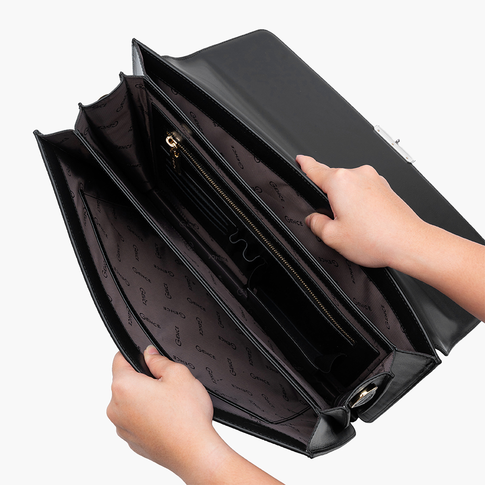 Các góc cặp được bo lại một góc nhỏ tạo cảm giác mềm mại, hài hòa cho cánh mày râu. Nắp cặp gập được góc 180 độ rất linh hoạt. Quai xách được làm bằng loại xốp dày, bọc da bên ngoài xách chắc tay, êm ái. Loại quai này thiết kế hạng vòng cung có thể chịu được trọng lượng từ 5-6kg.