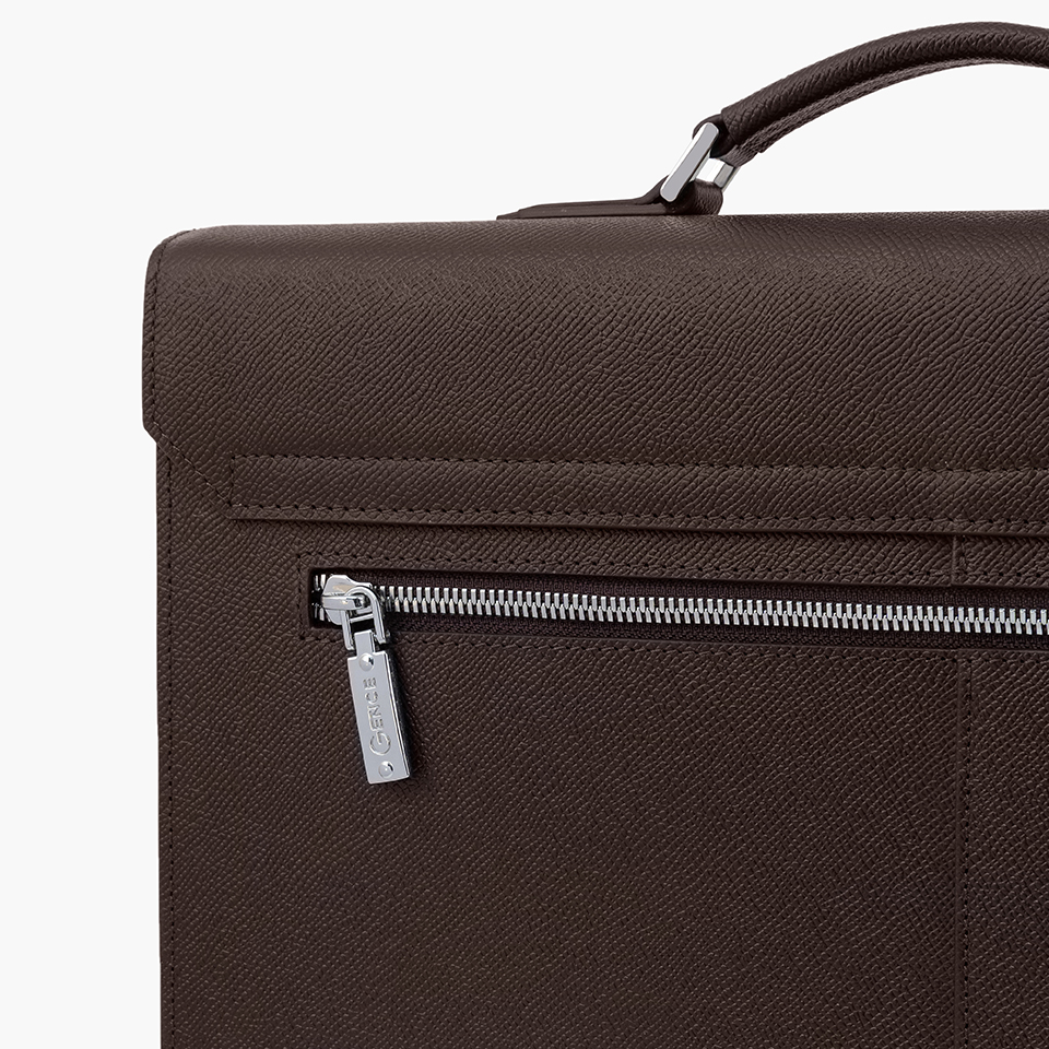 CTS28 sở hữu form cặp đứng vuông vức, tỷ lệ cân đối và đường nét sắc sảo, tạo ấn tượng chuyên nghiệp ngay từ ánh nhìn đầu tiên. Logo GENCE kim loại được đặt tinh tế ở góc dưới, đảm bảo nhận diện thương hiệu nhưng vẫn giữ sự tối giản cần thiết.