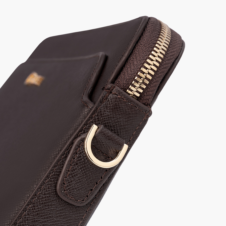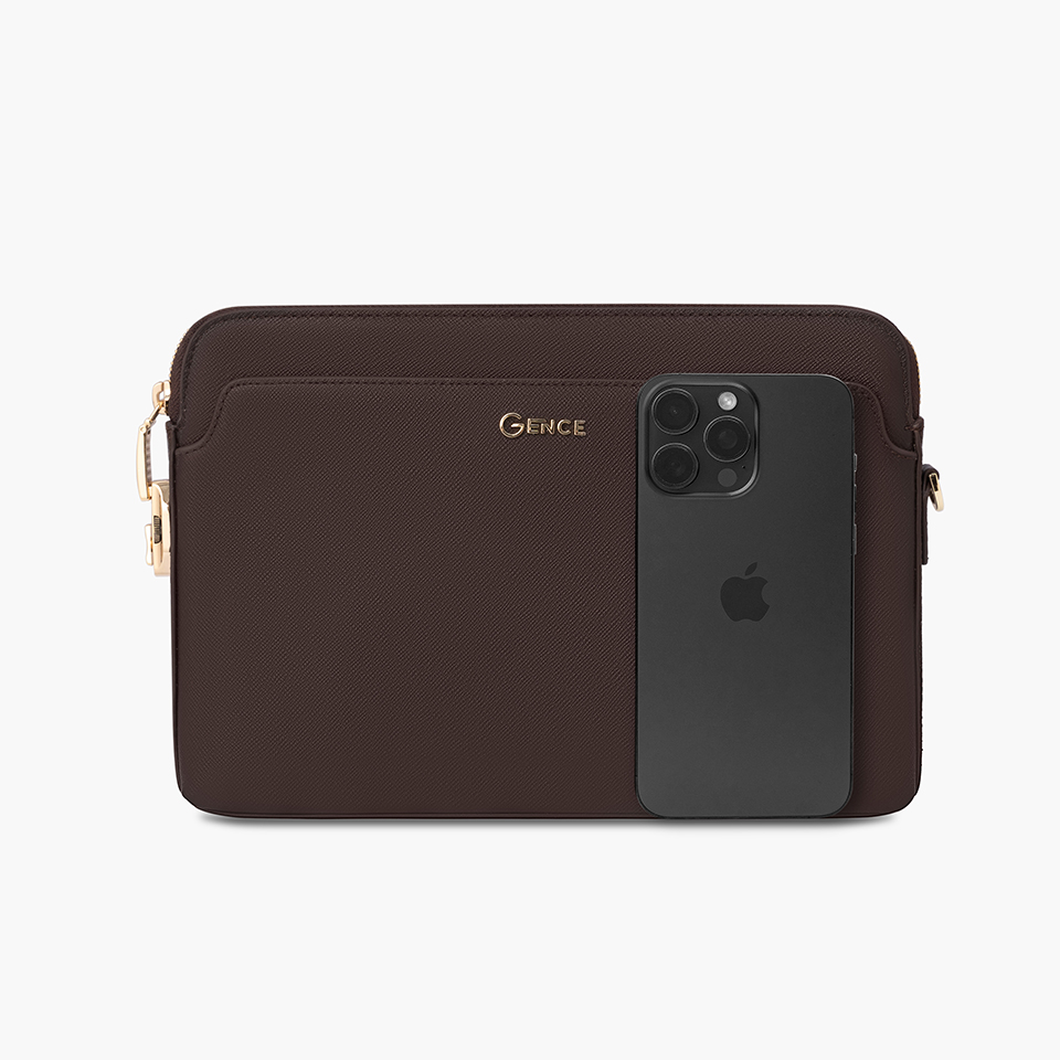 Màu nâu trầm giúp chiếc clutch dễ dàng kết hợp cùng nhiều phong cách trang phục khác nhau, từ vest công sở đến trang phục thường ngày.