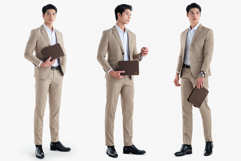 Quý ông đi công tác dùng túi nam cầm tay CK15 đựng check list công việc, passport, trang sức,... Kết hợp với trang phục áo sơ mi sáng màu (trắng/be/xanh) và quần âu lịch lãm hoặc bộ suit vest vừa vặn tạo thành outfit lịch lãm, uy tín cho nam giới.