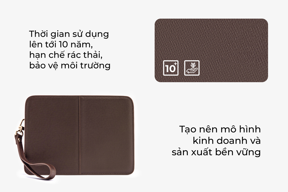 Quai đeo vào cổ tay được nối chắc chắn với móc treo phía cạnh túi. Ví cầm tay nam CK15 dùng quai bằng da thật 100% đem đến cảm giác thoải mái, dễ chịu. Mặt sau thiết kế theo dạng đối xứng mang đến cái nhìn đầy thiện cảm từ người đối diện.