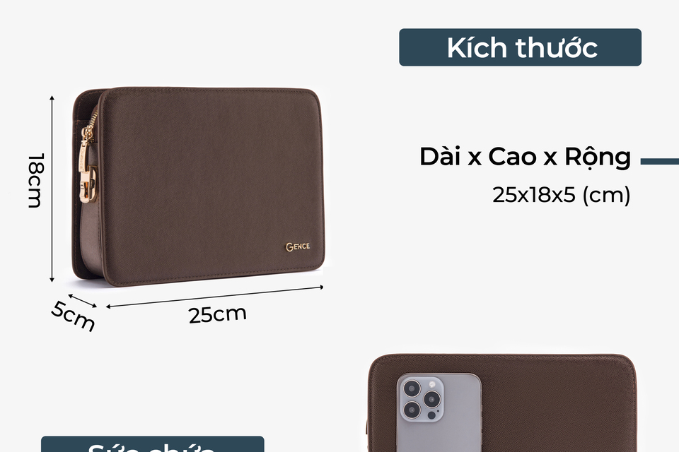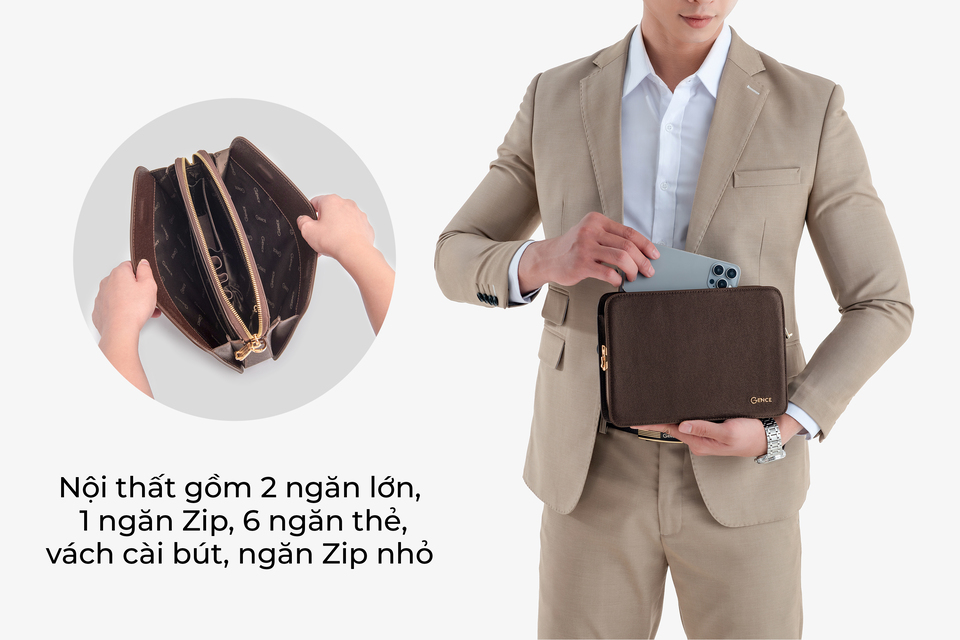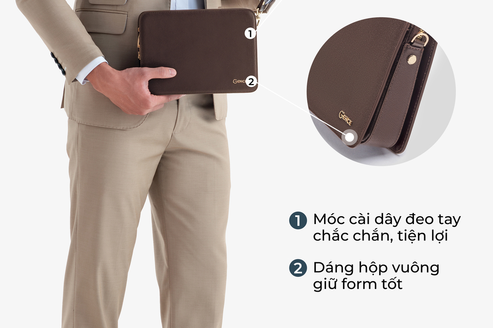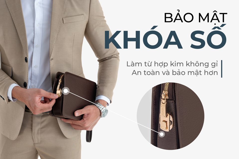 Khóa kéo của clutch nam dùng dầu độc quyền chỉ có tại gence.vn nên luôn trơn - mượt, sáng bóng. Loại khóa này hạn chế đến 90% lỗi rít, lệch răng khi kéo, kết hợp với khóa số tạo thành hệ thống bảo mật cao đến 99,99%.