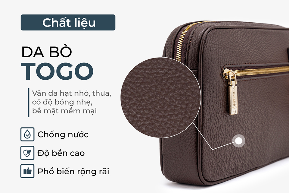 Clutch cầm tay nam da bò Togo khóa vân tay RB05 màu nâu được làm từ da bò Togo cao cấp, sở hữu nhiều ưu điểm vượt trội. Da bò Togo nổi tiếng với độ bền cao và khả năng kháng nước tốt, giúp sản phẩm giữ được vẻ đẹp qua thời gian mà không lo xuống cấp. Đây là món đồ đầu tư lâu dài cho phong cách của bạn.