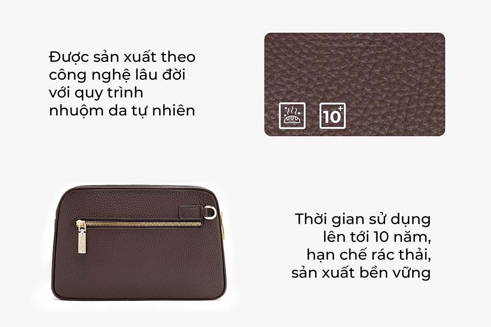 Màu nâu của clutch RB05 mang đến cảm giác ấm áp và sang trọng. Đây là màu sắc trung tính dễ dàng phối hợp với mọi trang phục, giúp người dùng luôn tự tin và nổi bật.