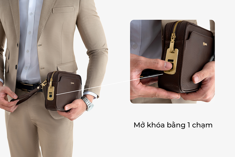 Khóa vân tay thông minh trên Clutch cầm tay RB05