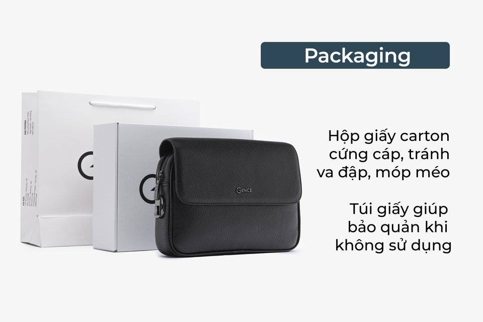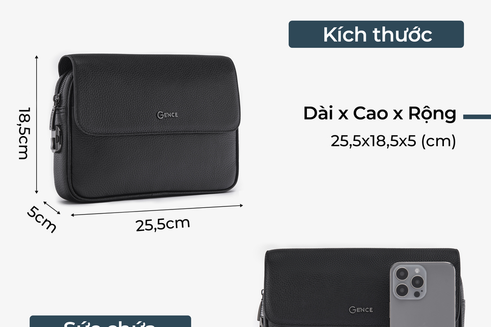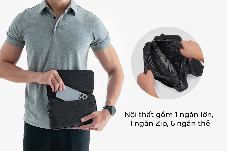 CK20 còn được thiết kế với một ngăn chính rộng rãi và một ngăn phụ, giúp mang theo tiền mặt, thẻ card, điện thoại, giấy tờ tùy thân,... phòng trong những trường hợp cần thiết phải sử dụng đến. Lớp vải bên trong được in tên Gence tăng thêm tính thẩm mỹ và chống ẩm chống nước cực tốt.
