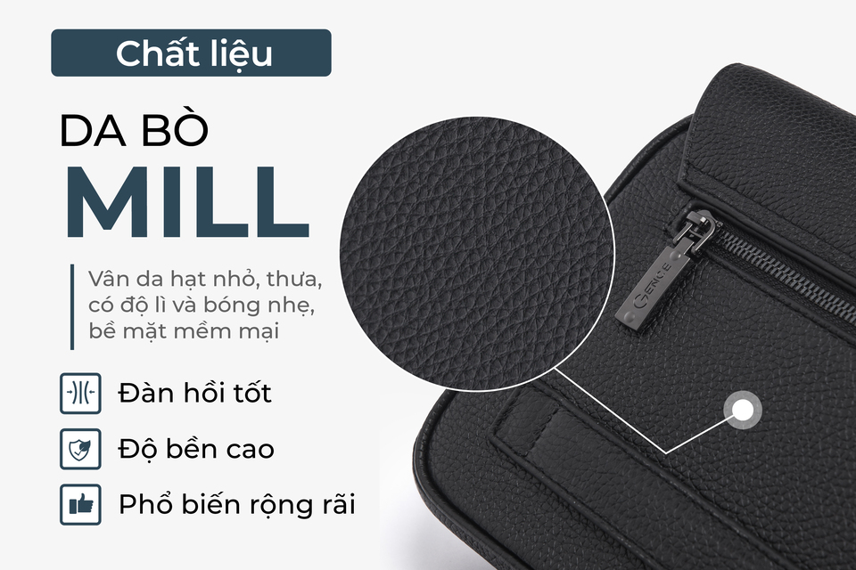 Da bò Mill được gence.vn cân nhắc kỹ lưỡng để tạo ra chiếc bóp cầm tay nam CK20 hoàn hảo dành cho quý ông. Trải qua sự lựa chọn khắt khe giữa 1000 con bò mới chọn được 100 con bò phát triển trong điều kiện môi trường tốt. Vì thế, những miếng da bò Mill đều có tính thẩm mỹ và độ đàn hồi cao.