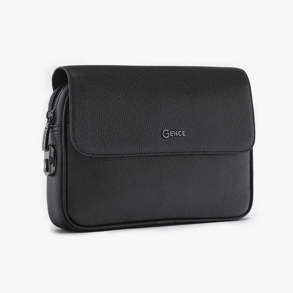 Mặt trước của bóp cầm tay nam CK20 có thiết kế basic với phần nắp gập 180 độ vô cùng cứng cáp. Logo Gence được in ngay chính giữa nắp gập và phủ lên mình lớp bạc sáng bóng nổi bật trên bề mặt da đen.
