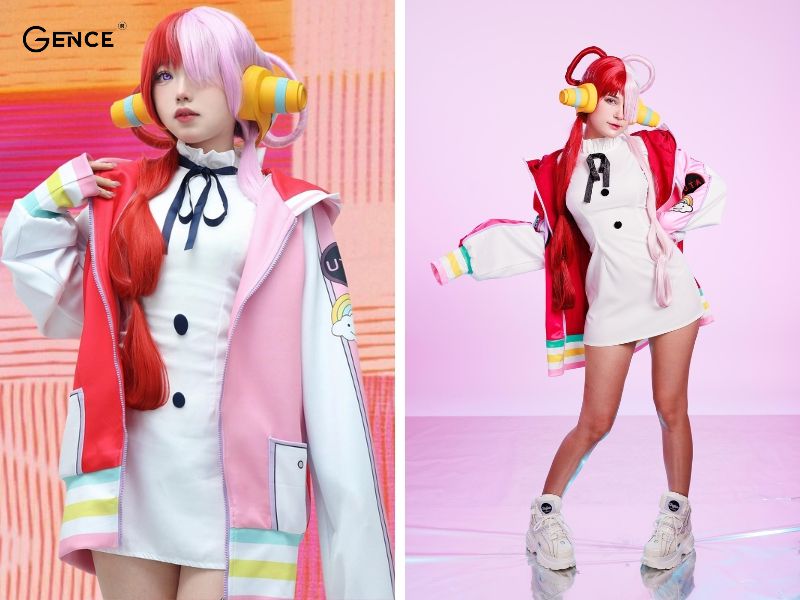Uta, một trong những nhân vật nữ nổi bật trong One Piece, có trang phục cosplay độc đáo và bắt mắt. Cô thường được tái hiện với áo khoác màu hồng nổi bật, mũ lưỡi trai kết hợp với tai nghe, cùng với mái tóc hai màu đặc trưng. Những yếu tố này tạo nên một diện mạo thú vị và đầy màu sắc, giúp cosplayer dễ dàng thể hiện được cá tính và phong cách riêng của Uta trong thế giới One Piece.