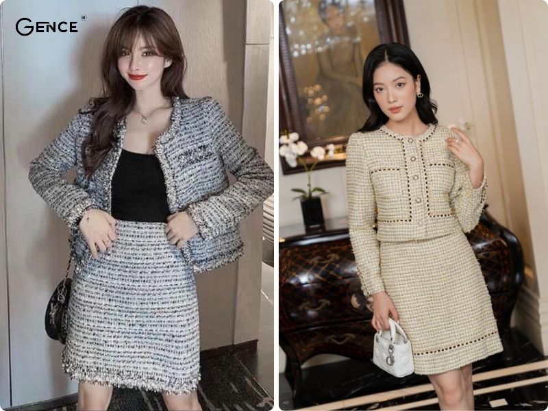 Set dạ không cổ là bộ trang phục thể hiện phong cách thời trang trẻ trung và hiện đại. Chất liệu dạ tweed không chỉ mang lại cảm giác ấm áp mà còn tạo nên sự sang trọng và đẳng cấp. Bộ áo váy này giúp bạn tỏa sáng và ghi điểm trong bất kỳ sự kiện nào trong mùa lạnh. Phối outfit cùng túi xách để tăng sự thu hút hơn.