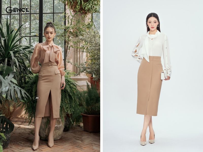 Chân váy xẻ tà kết hợp cùng áo kiểu