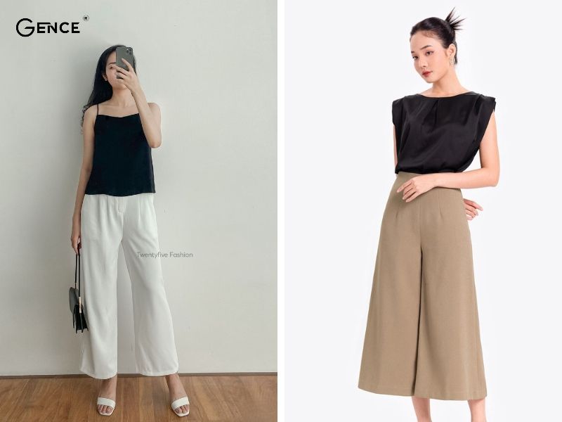 Phối đồ cho dáng quả lê với áo hai dây và quần culottes
