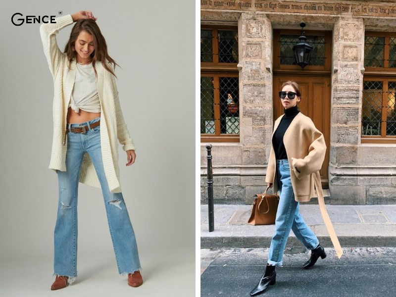 Bạn có thể tận dụng những kiểu dáng quần jean trong tủ đồ để mix-match cùng áo cardigan. Khi phối với quần jean, bạn sẽ có set đồ thanh lịch, nhẹ nhàng khi đi làm hay đi dạo phố. Với những cô nàng cá tính, bạn hãy thử phối cùng quần jeans rách gối hoặc có màu nổi bật hơn áo.