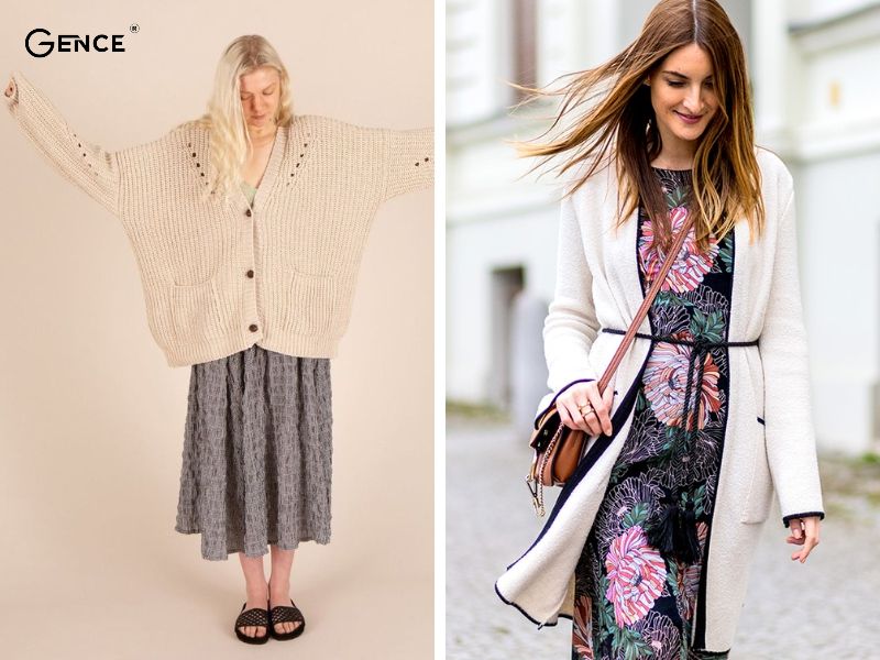- Lựa chọn kiểu dáng phù hợp với dáng người: Áo Cardigan có nhiều kiểu dáng như dáng dài, croptop, oversize, hoặc dáng ngắn. Nếu bạn có dáng người nhỏ nhắn, cardigan croptop hoặc dáng ngắn sẽ giúp tôn chiều cao. Ngược lại, cardigan dáng dài thích hợp với những người muốn tạo vẻ ngoài thanh thoát và thon gọn.