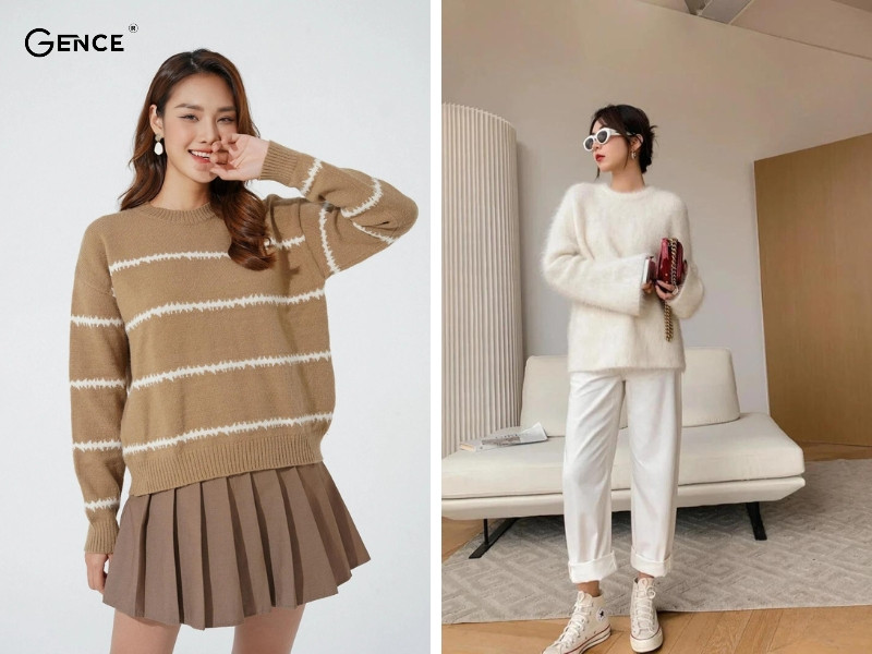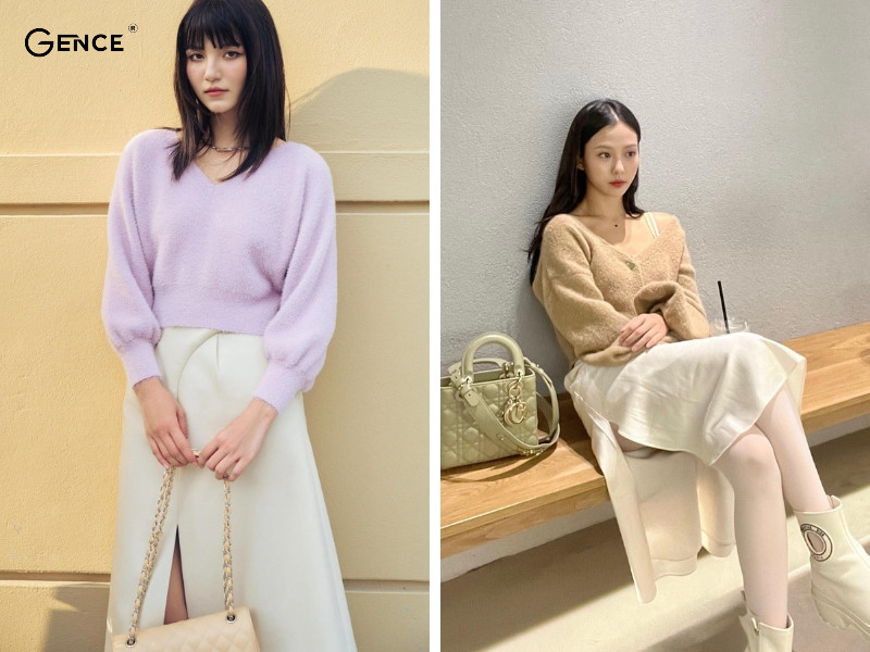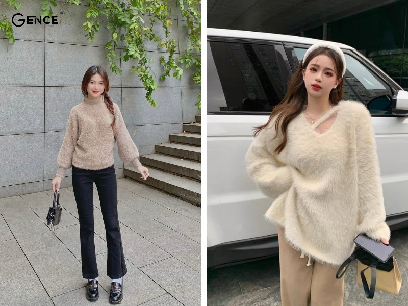 Bạn đang tìm kiếm set đồ nhẹ nhàng, nữ tính mà vẫn thoải mái khi mặc ra ngoài. Bạn có thể lựa chọn áo len lông thỏ có màu sắc bắt mắt, tươi sáng để tạo điểm nhấn khi ra ngoài. Kết hợp giữa hai item này là sự lựa chọn hoàn hảo giúp bạn nổi bật với style thời trang cá nhân. Đồng thời tạo nên sự kết hợp tinh tế giữa cổ điển và hiện đại.