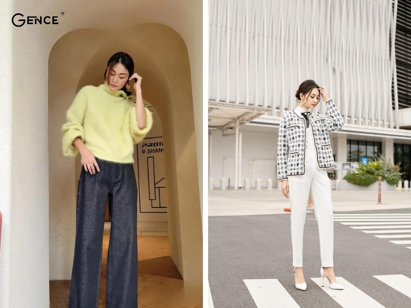 Quần jean là item phổ biến và không còn xa lạ với chị em phụ nữ. Khi bạn kết hợp với áo len lông thỏ cực sành điệu mà vẫn trẻ trung, năng động. Quần jean với nhiều thiết kế như ống rộng, skinny để bạn thoải mái lựa chọn. Bên cạnh đó, bạn nên lựa chọn áo len lông thỏ màu basic như đen, trắng để tạo sự hài hòa cho outfit.