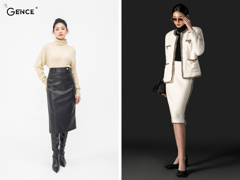 Chân váy bút chì gắn liền với hình ảnh cô gái công sở thanh lịch và tinh tế. Khi phối đồ với áo len lông thỏ tạo nên sự nổi bật và thu hút ánh nhìn. Bạn có thể diện set đồ này khi đi làm, đi chơi hay đi dạo trong trung tâm thương mại.