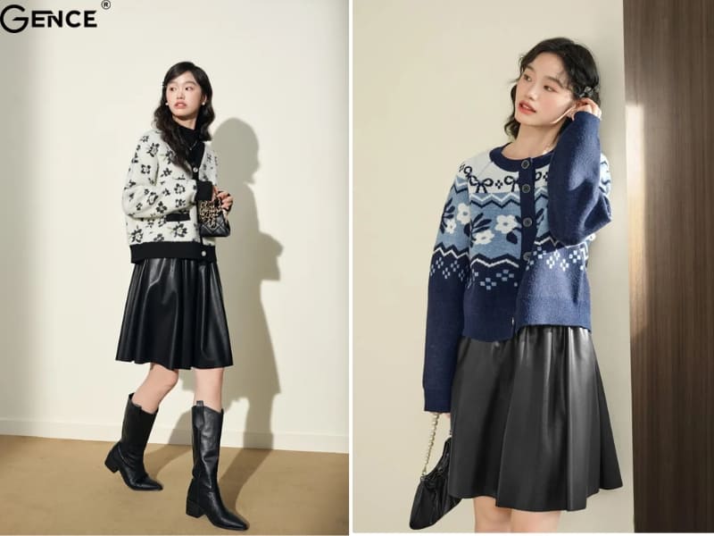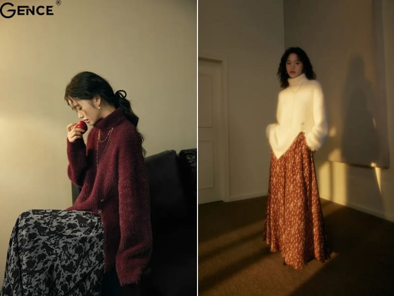 Chân váy hoa nhí mang đến vẻ nữ tính và nhẹ nhàng khi phối cùng áo len lông thỏ mềm mại, ấm áp. Bộ đôi này không chỉ phù hợp cho những ngày đông mà còn tạo cảm giác thoải mái, đáng yêu. Hãy chọn áo len màu trung tính để làm nổi bật họa tiết hoa trên chân váy, hoặc áo len tone màu pastel để tăng thêm phần dịu dàng. Một đôi giày bệt hoặc giày boots cổ thấp sẽ hoàn thiện set đồ đầy tinh tế này.