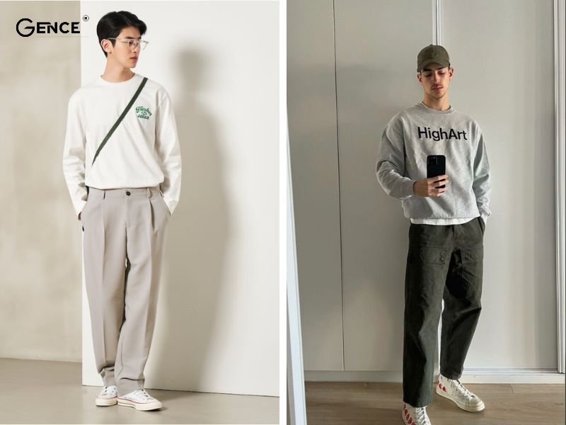 Áo sweater nam phối đồ với quần ống rộng chinos
