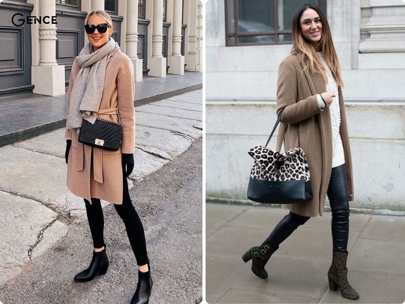 Phối đồ với quần legging và áo khoác dạ là style mùa đông thông minh và sang trọng. Áo khoác dạ dài giúp che đi khuyết điểm, tăng sự ấm áp trong những ngày đông giá rét.