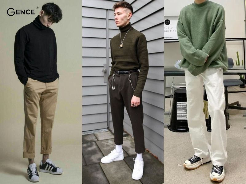 Phối đồ đi Đà Lạt cho nam với áo sweater và quần ống rộng