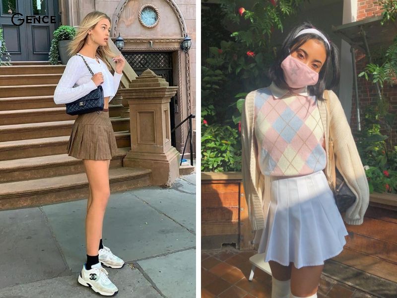 Phối đồ soft girl cùng chân váy tennis