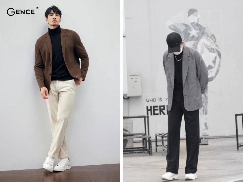 Bạn có thể kết hợp với áo blazer và quần vải để tạo dáng lịch sự và thanh lịch. Các phụ kiện như giày tây, thắt lưng nam và đồng hồ sẽ tăng thêm sự sang trọng và nam tính cho trang phục của bạn.