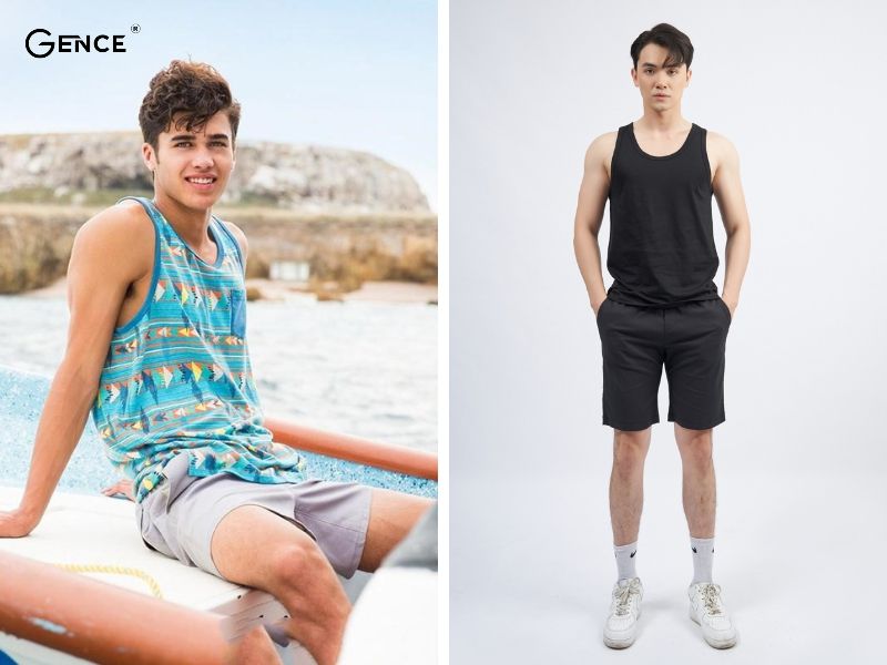 Mỗi chàng trai đều có ít nhất một vài chiếc quần short và áo ba lỗ. Set đồ này thường được cánh mày râu mặc trong những chuyến nghỉ dưỡng hay du lịch biển. Bạn có thể chọn áo balo có họa tiết đơn giản cùng quần short đơn giản màu đen, xám hoặc xanh dương.