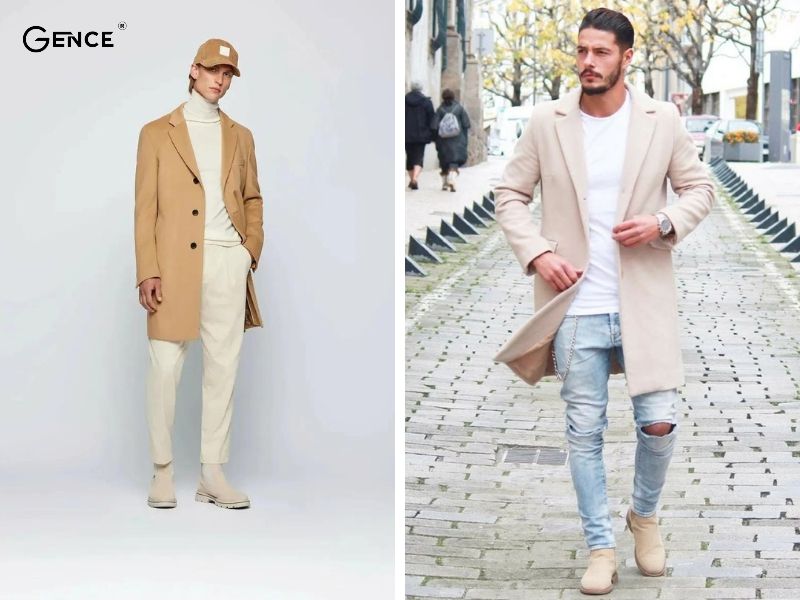 Áo khoác dài kết hợp với quần tây tạo nên gu thời trang nam thanh lịch và đơn giản vào mùa đông. Để tạo sự nổi bật cho set đồ, bạn có thể lựa chọn tone màu áo và quần cơ bản như đen, trắng hoặc nâu và mặc ngoài với áo khoác dáng dài tone màu sáng.