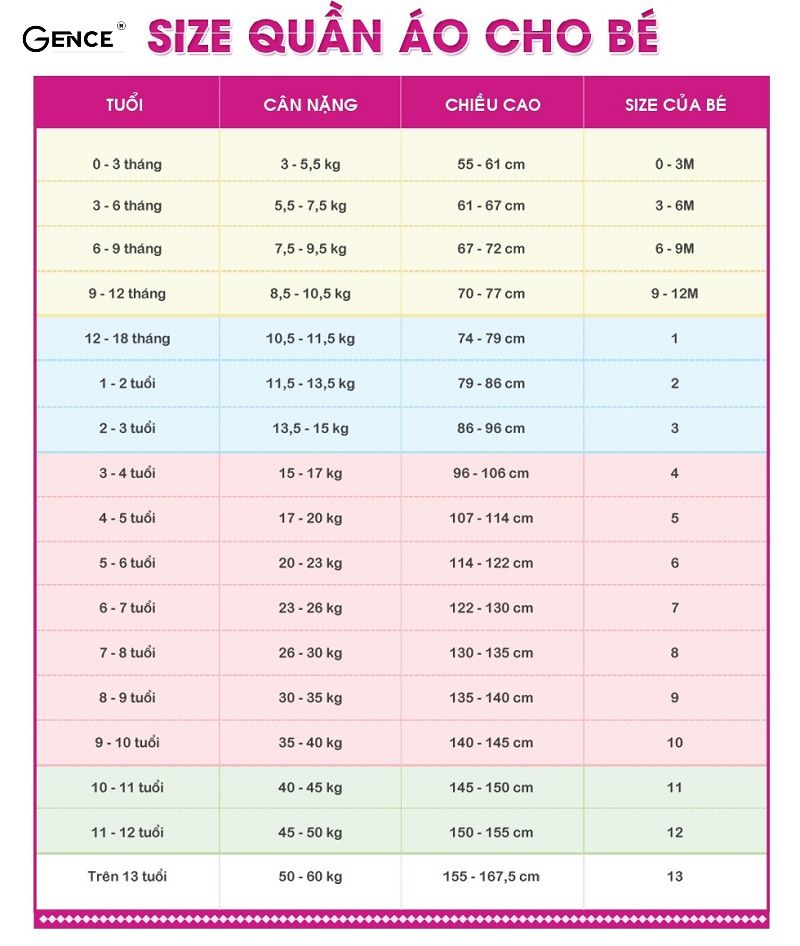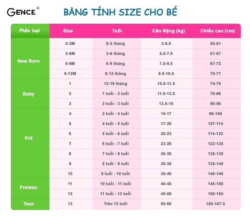 Vừa rồi là những chia sẻ của https://gence.vn/ về bảng size quần áo trẻ em Quảng Châu. Mong rằng từ những thông tin trên các mẹ có thể sắm cho bé những bộ đồ chất lượng, vừa size người.