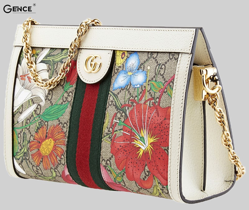 Túi xách kẹp nách nữ Gucci New Handbags Ophidia là sự kết hợp từ vải canvas GG Supreme màu be với phần viền da màu trắng. Mẫu túi nổi bật với những hoa văn, họa tiết in hình hoa lá nhiều màu sắc rất tinh tế, sắc sảo. Nét đặc biệt ở chiếc túi này là chi tiết đường viền to phối màu xanh lá cây và màu đỏ được thiết kế ở giữa túi kèm với chữ G đôi. Đây là một chiếc túi đầy ấn tượng thu hút mọi ánh nhìn