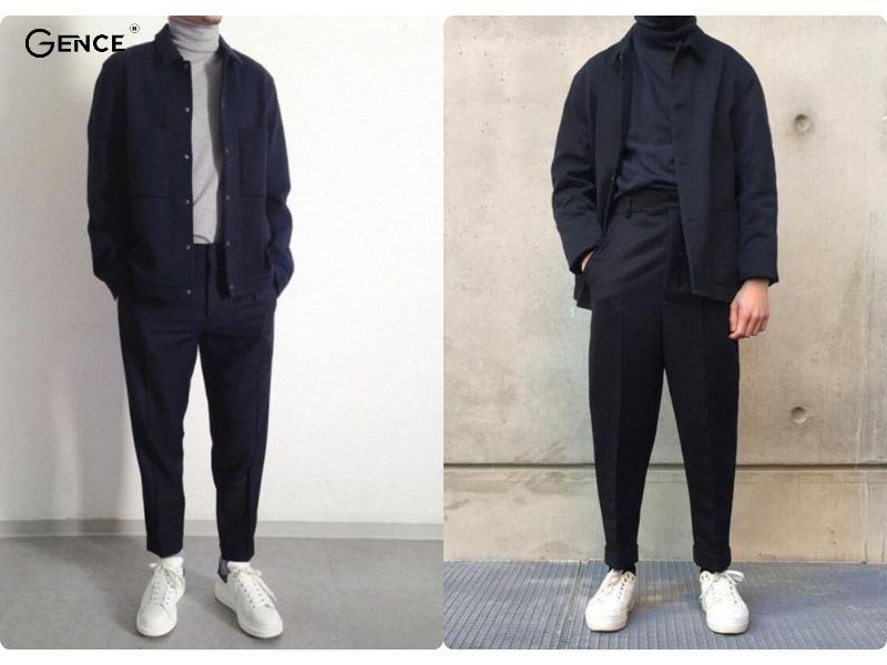 Cách mặc đồ này tạo ra một diện mạo chững chạc và lịch lãm. Để làm điểm nhấn cho bộ trang phục, hãy lựa chọn giày tây thay vì những đôi sneakers trắng. Giày tây không chỉ tinh tế mà còn thể hiện phong cách và gu thẩm mỹ của nam giới.