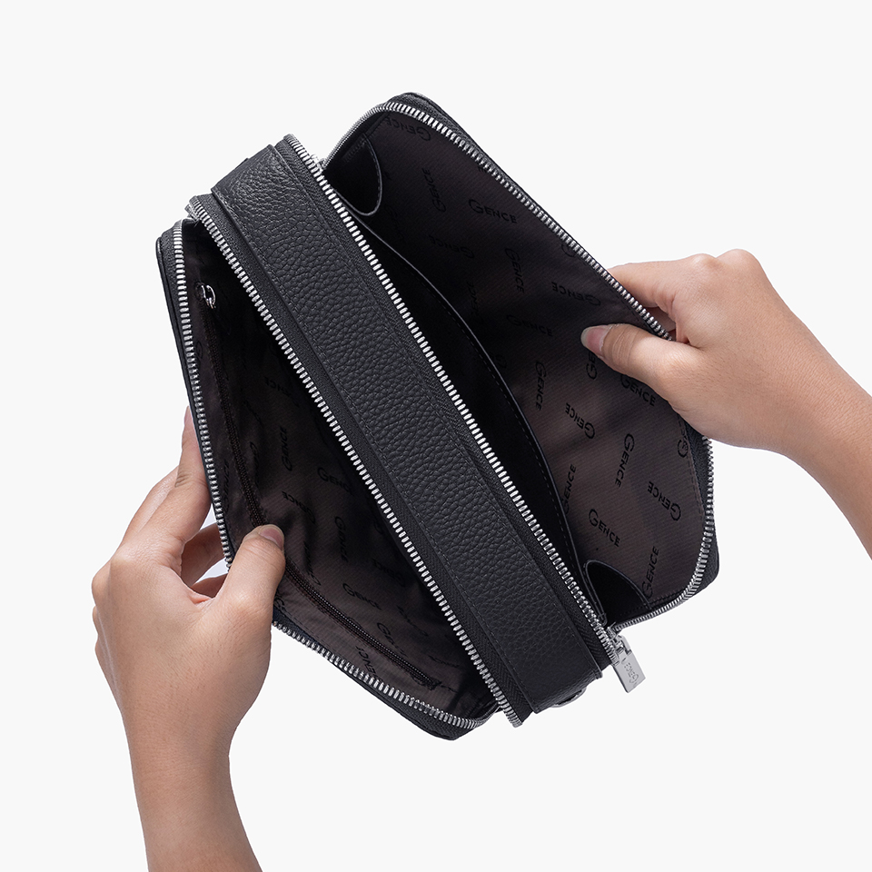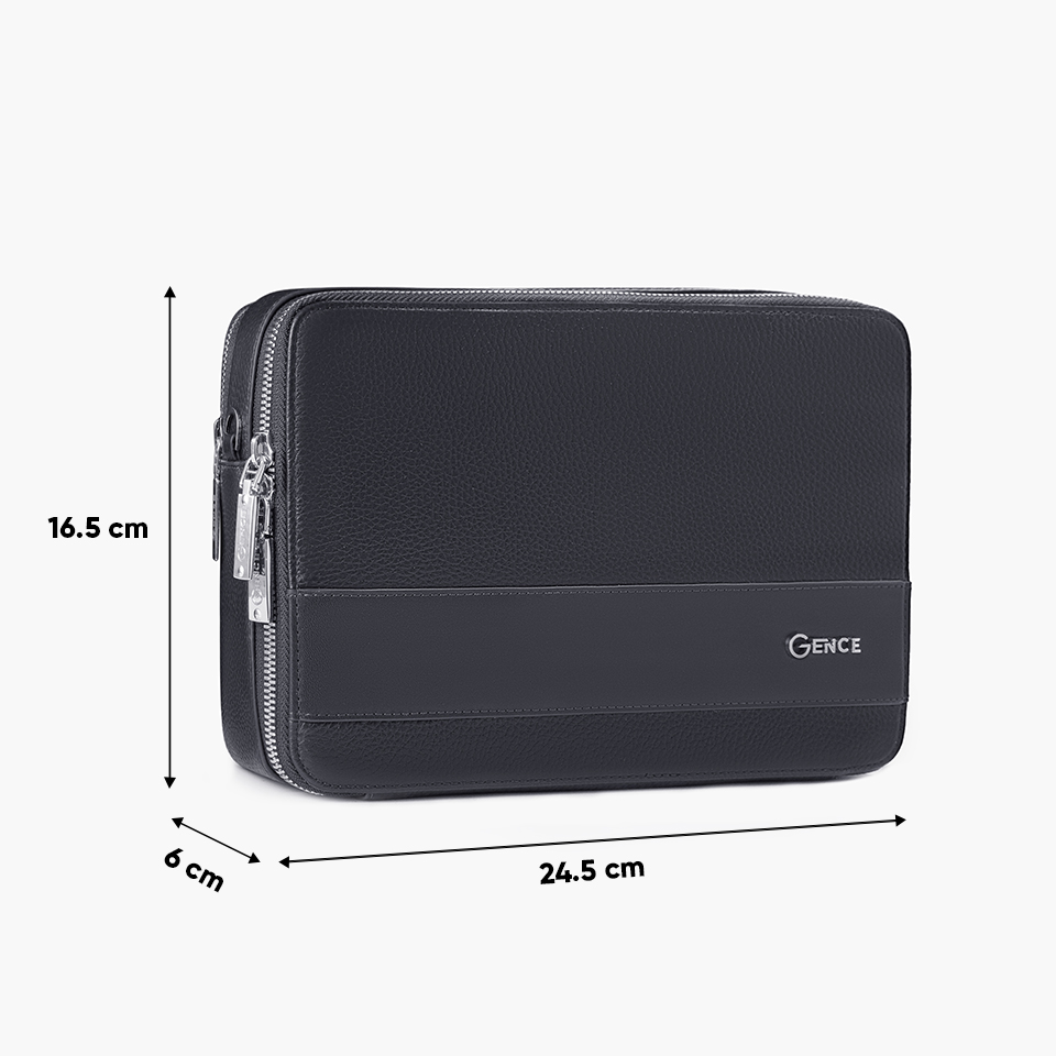 Túi cầm tay nam Gence TC05 có kích thước vừa phải, thuận tiện khi cầm tay hoặc đeo chéo bên người. Bên trong được chia thành các ngăn riêng biệt, đủ để sắp xếp điện thoại, ví tiền, giấy tờ, thẻ và các vật dụng cá nhân cần thiết mà không gây cảm giác cồng kềnh.