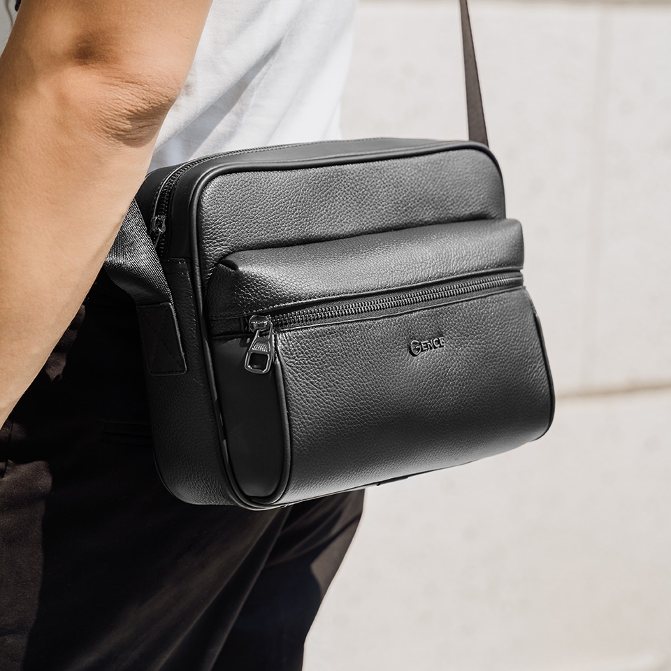 Gence dùng vải cao cấp để dùng dây đeo chéo cho túi da nam thời trang. Dây đeo còn có thể điều chỉnh ngắn dài tùy ý để phù hợp với hoàn cảnh sử dụng.