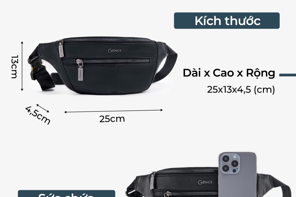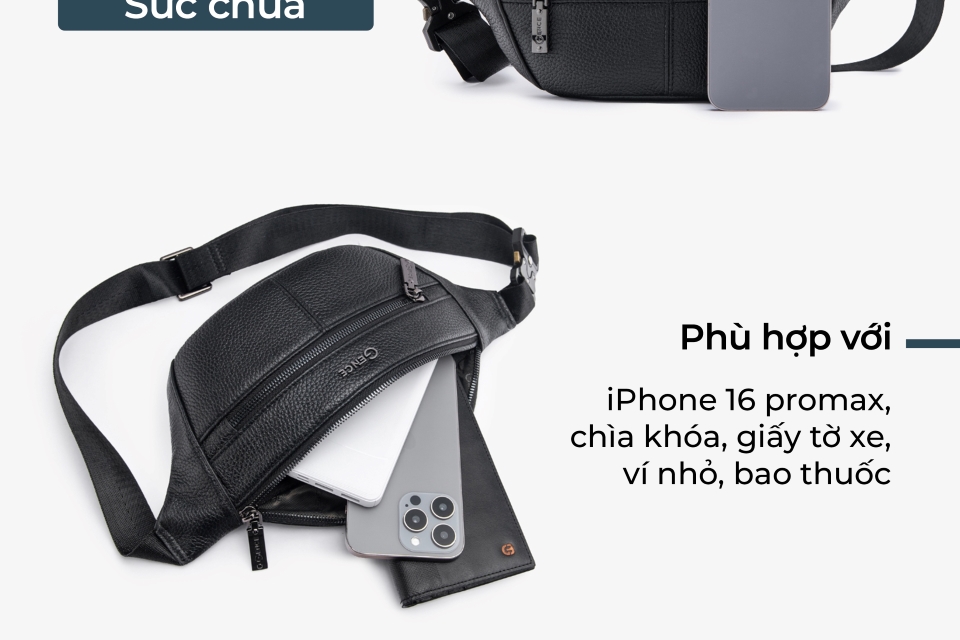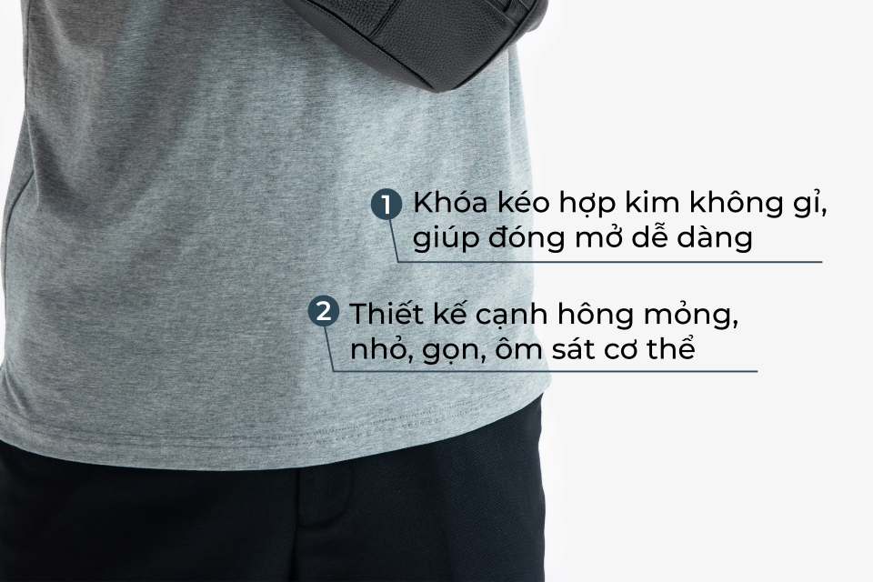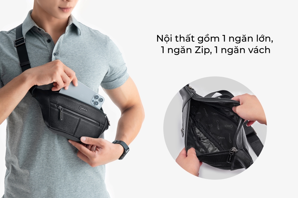 Ngăn to chính được ưu tiên đựng điện thoại, sạc dự phòng, ví tiền,... Ngăn nhỏ phía trước được ưu tiên đựng tai nghe có dây, chìa khóa, hóa đơn mua hàng,...