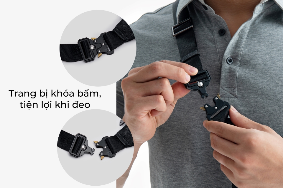 Dây đeo được thiết kế có thể điều chỉnh ngắn dài tùy cỡ người. Phần nối dây đeo vào thân cặp được bọc da tăng thêm sự thời thượng cho TZ01.