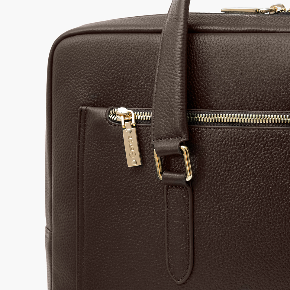 Gam nâu trầm cổ điển là một trong những màu sắc “đắt giá” nhất của dòng túi công sở nam: dễ phối cùng vest, sơ mi, quần âu hoặc cả outfit smart-casual.