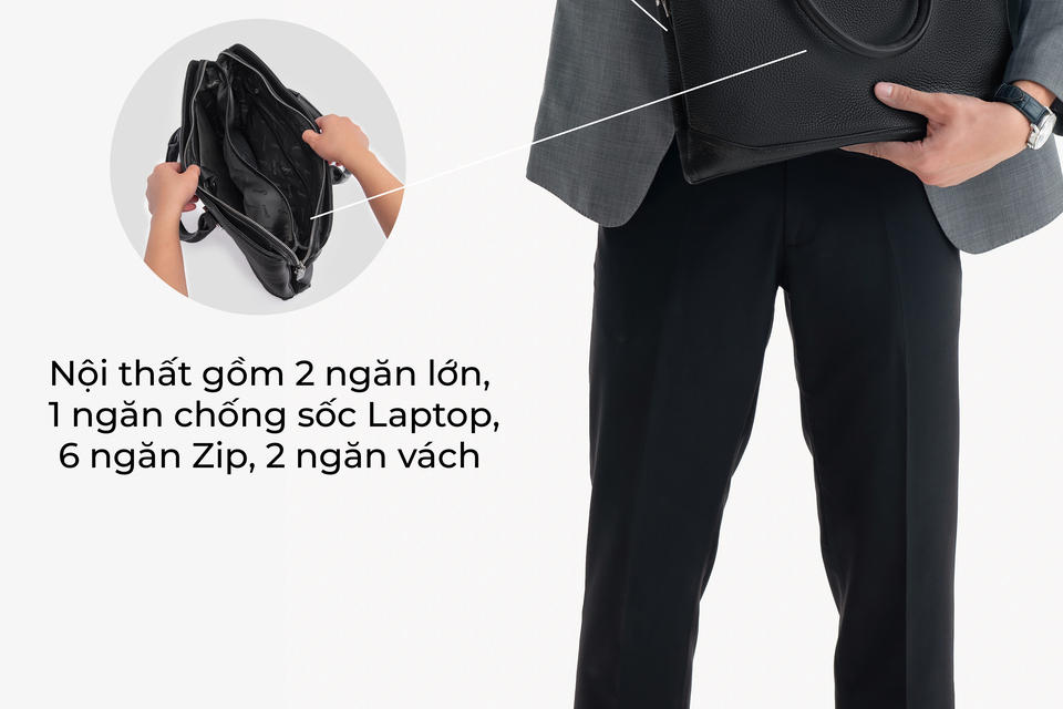 Trưởng khoa điều dưỡng, trưởng khoa tim mạch dùng cặp da đựng laptop bằng da GCE14 đựng báo cáo, kế hoạch, hồ sơ bệnh án,... Màu đen tuyền kết hợp với bộ đồ blue trắng cực kì nổi bật, thể hiện tri thức, vị thế của nam giới.