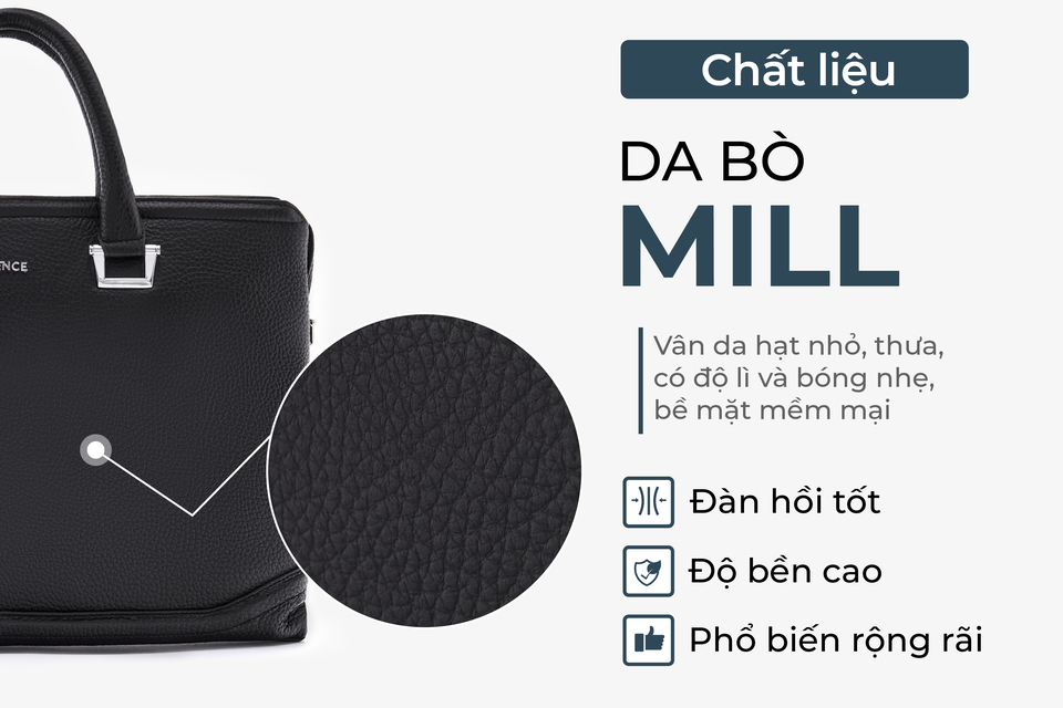 Do tính chất căng - phồng của da mill nên cặp da đựng laptop bằng da GCE14 bảo vệ tốt máy tính khỏi các va đập nhẹ. Mill có khả năng chống khuẩn, kháng nước mạnh mẽ đem đến trải nghiệm thân thiện với nam giới.