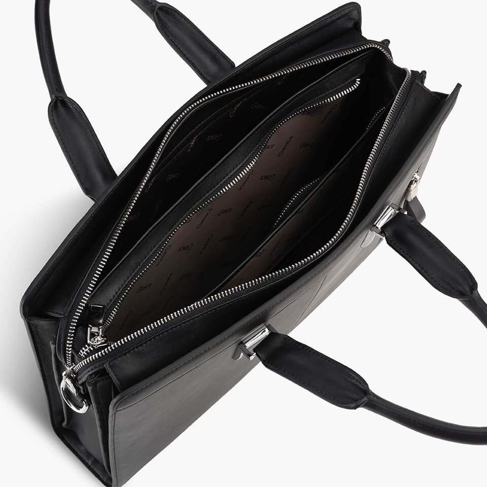 Hai ngăn ở hai bên có kích thước đựng vừa laptop, sạc máy tính,... Một ngăn nhỏ bên trong cùng có thể tận dụng như một ví tiền. Tiền mặt, giấy tờ cá nhân, chìa khóa,... thường được đựng ở ngăn này.