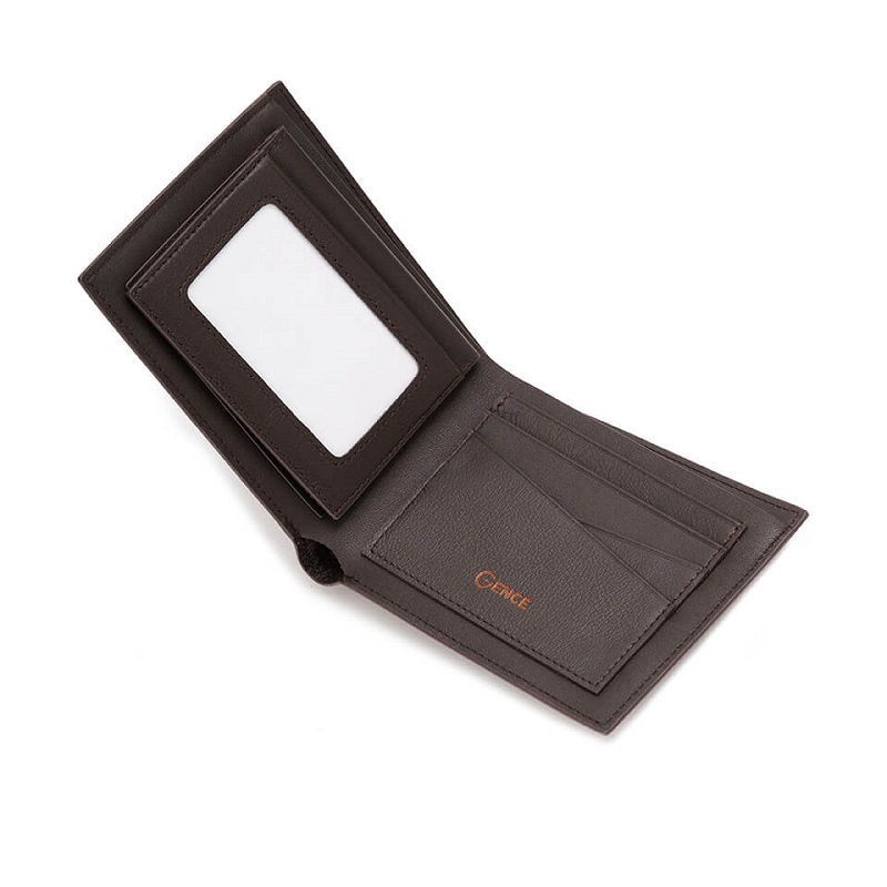 C14 được thiết kế gập đôi thông dụng, dễ dàng sử dụng. Lật mở mặt trong sẽ thấy ngay các ngăn đựng thẻ được thiết kế khoa học. Thẻ ngân hàng, card visit, tín dụng,... có thể đựng ở các khe này. Các khe bên phải được tạo nên từ những miếng da đường cắt xẻ ấn tượng. Phía dưới là logo thương hiệu Gence được dập trực tiếp vào bề mặt. Nó vừa tôn lên sự sang trọng, vừa là lời khẳng định thương hiệu.