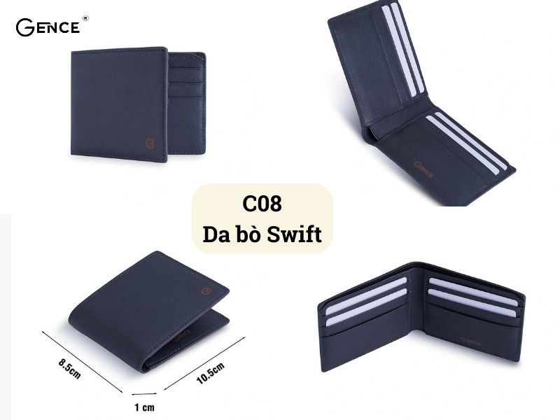 Da bò Taiga cũng là một trong những loại da được Gence lựa chọn cho bộ sưu tập ví ngang nam. Với họa tiết hình lá kim sang trọng kết hợp với màu đen huyền bí, mang đến sự nam tính cho phái mạnh. Ngoài ra, độ bền của ví ngang nếu được bảo quản tốt cũng từ 5 - 10 năm sử dụng. Quý ông thích sự sang trọng, phong thái trưởng thành hãy lựa chọn C04. Hay quý cô muốn tìm món quà tặng cho người thân hoặc người thương.